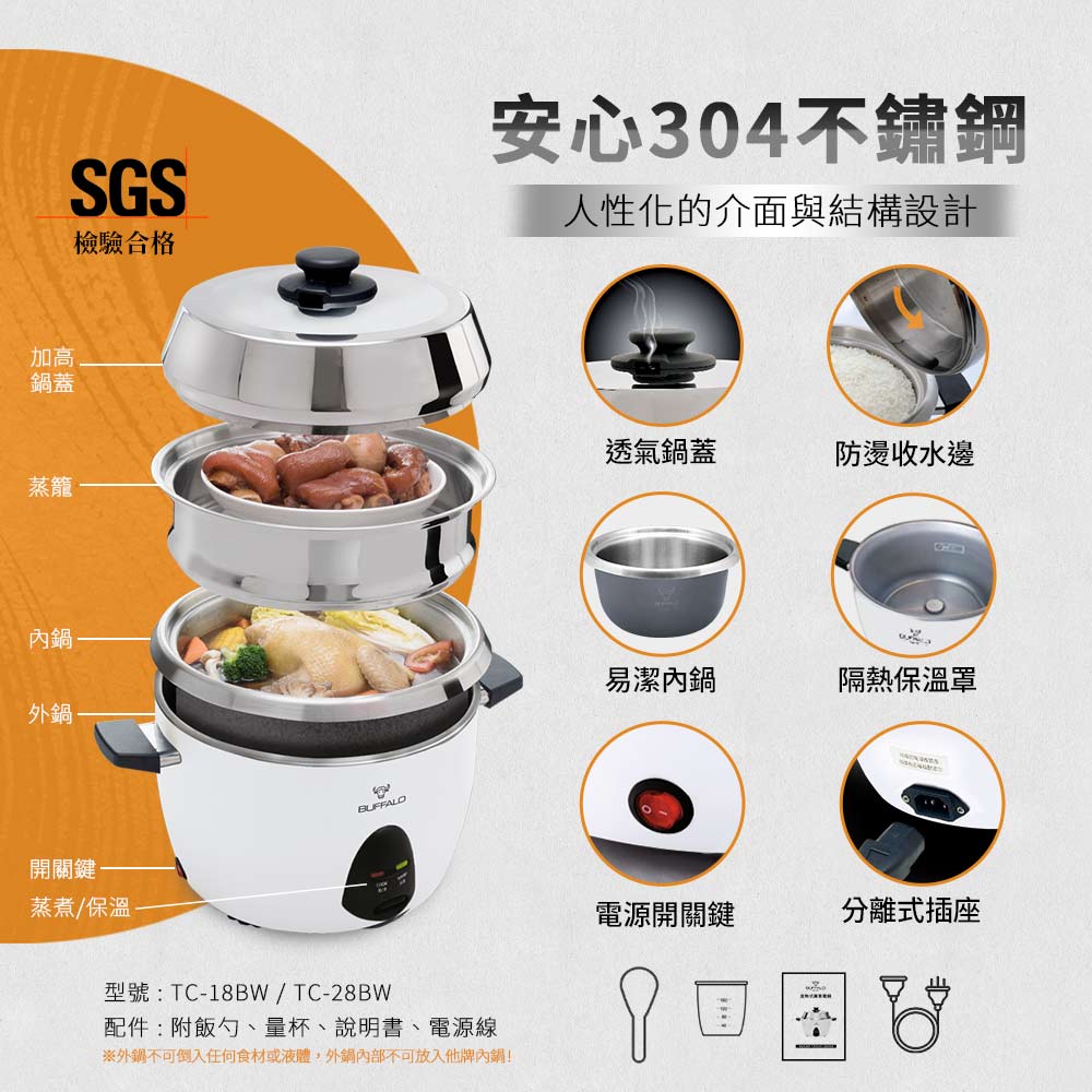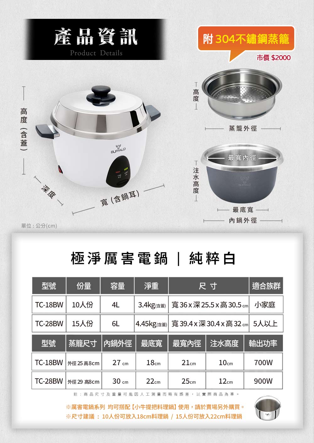 TC-28BW 極淨厲害電鍋15人份(附蒸籠)|純粹白