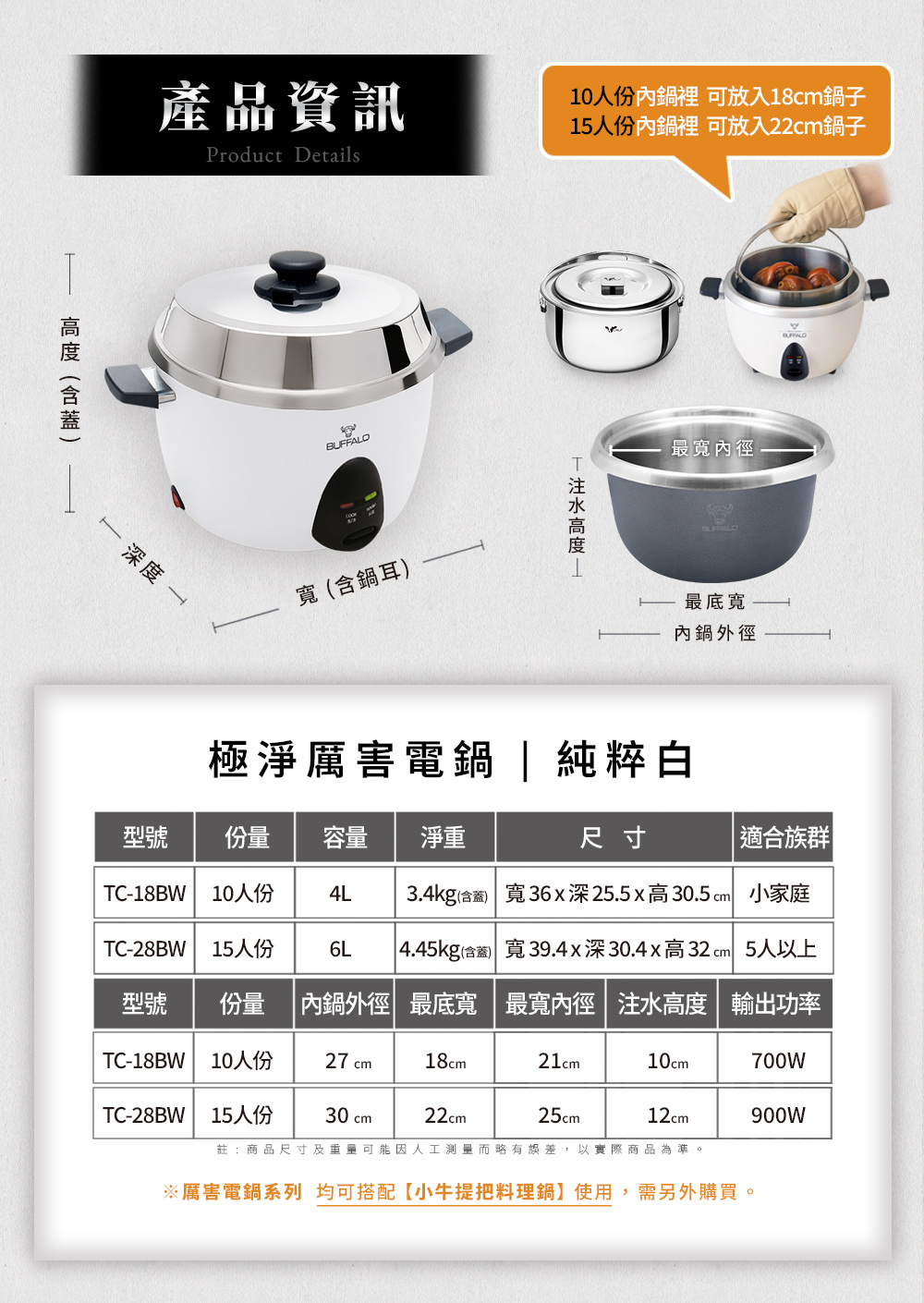 TC-28BW 極淨厲害電鍋15人份|純粹白