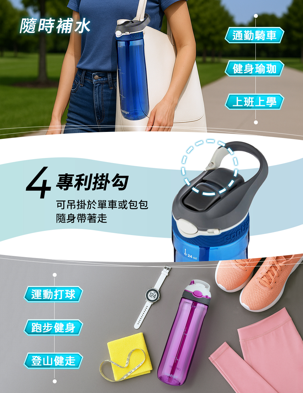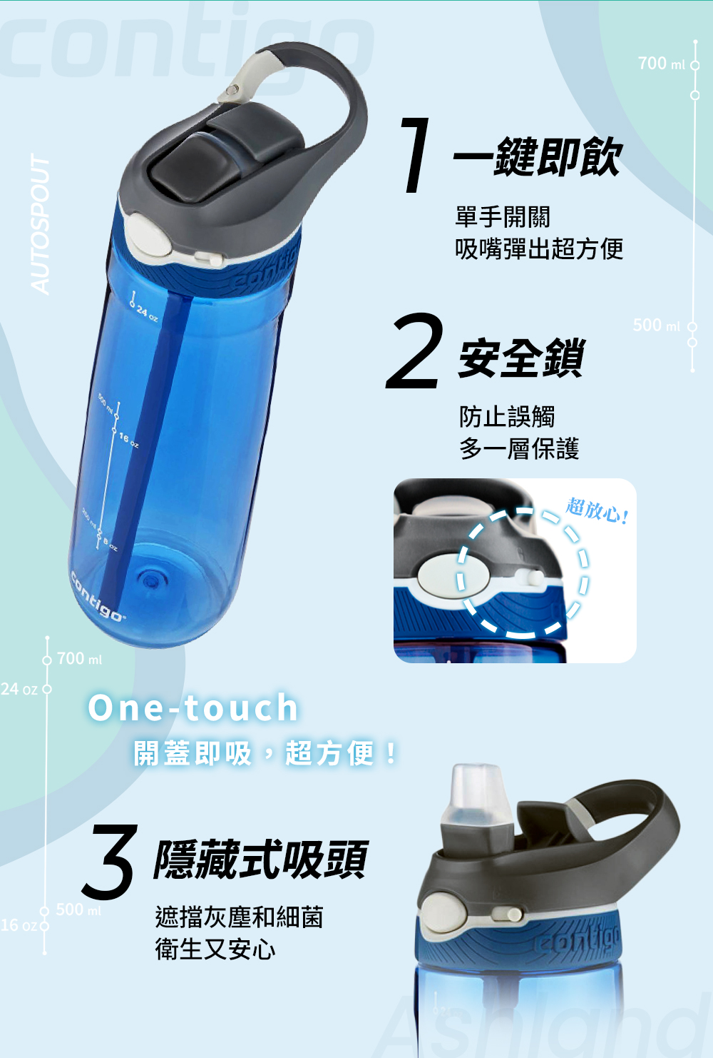 專利 AUTOSPOUT 技術隱藏吸管,防塵防漏,更衛生。